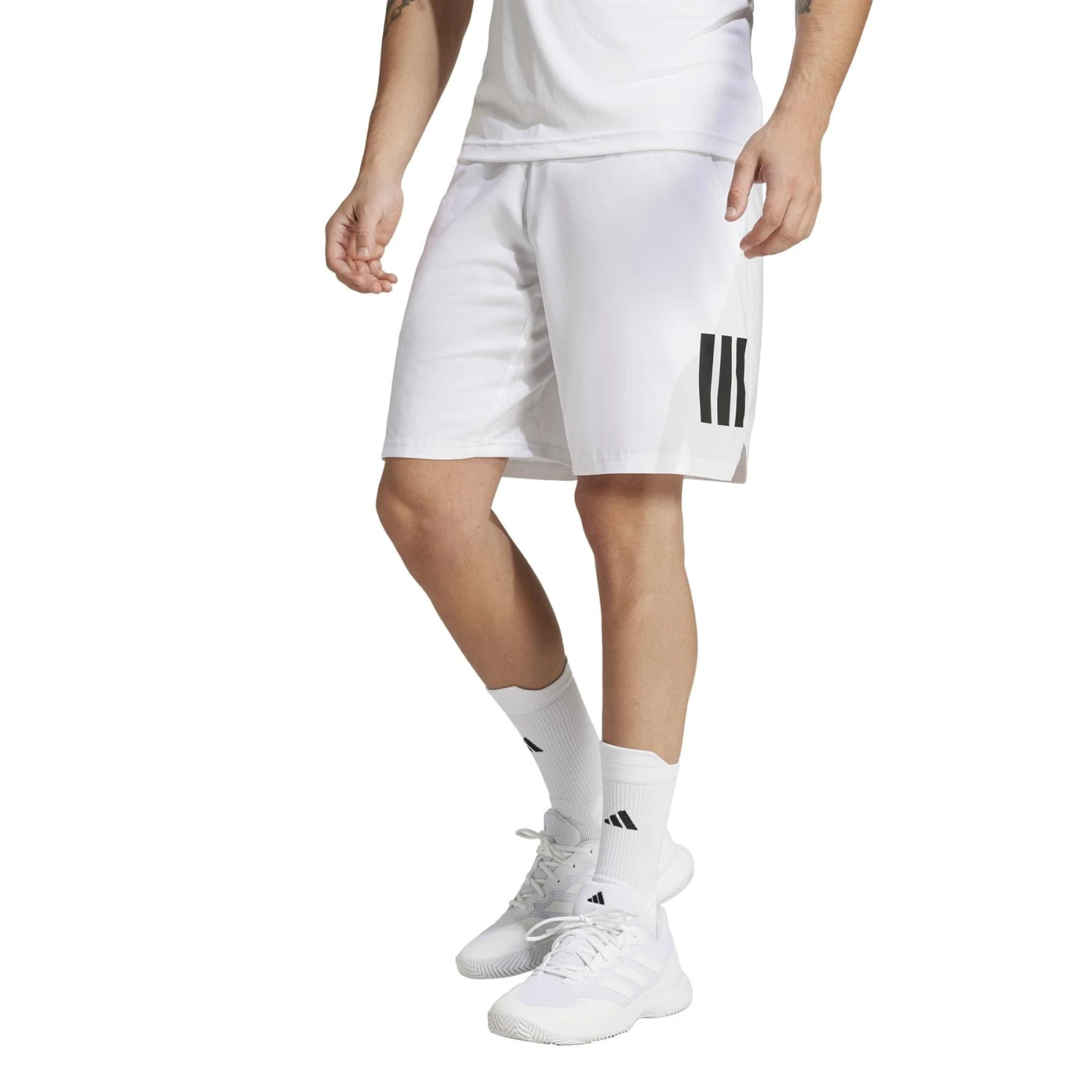 The ADIDAS Club 3 Stripe Mens Tennis Shorts are moisture-wicking shorts made with recycled materials.